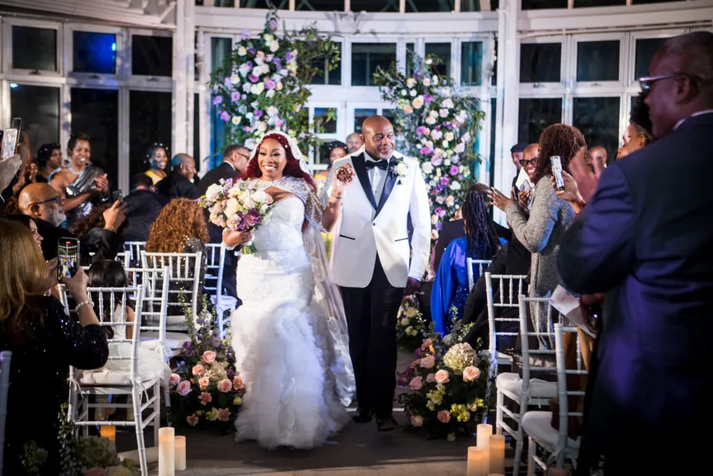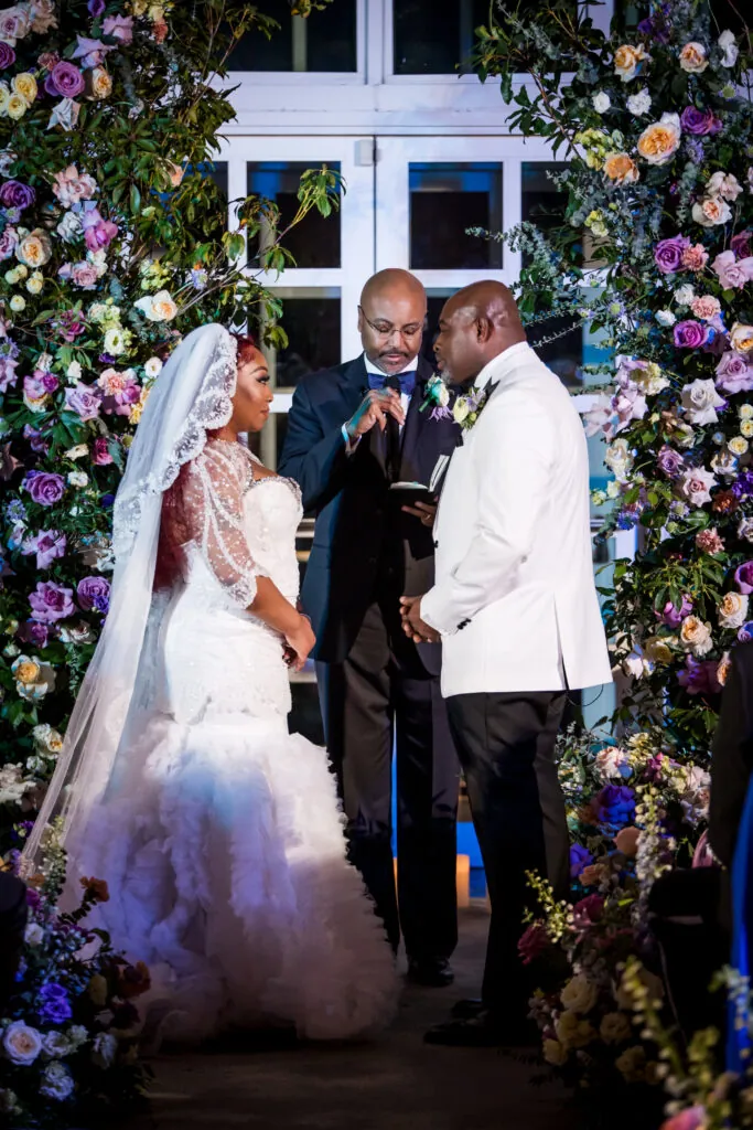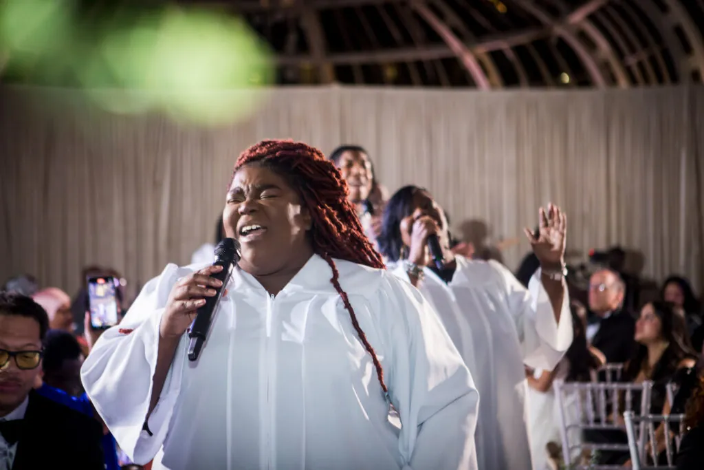 The ceremony was nothing short of magical, held in the stunning glass-walled Palm House. We adorned with the space with candlelight and lush florals in shades of purple and yellow. As the leader of a top music and entertainment company, the bride Chinah knew the power of music in shaping an unforgettable experience. Every element of the wedding day music was impactful and set the tone for a soulful and incredible celebration. Guests were serenaded by live strings, a gospel choir, and hair raising vocalists, creating an atmosphere filled with depth and emotion. The couple’s love story, spanning decades, made every moment even more profound. Surrounded by family and friends, Chinah and Musa chose forever, sealing their vows with a heartfelt kiss. And the cherry on top was the bride shocking everyone with a surprised performance to her new husband!