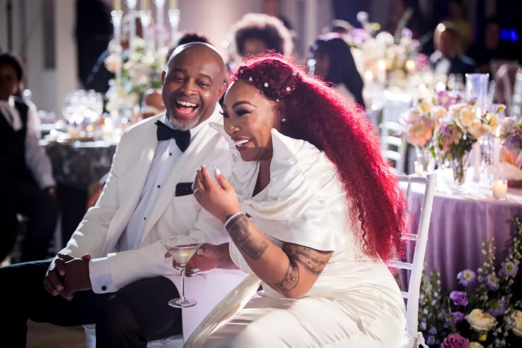 The reception was a vibrant, high energy celebration, where a dynamic live band kept the dance floor packed all night. Given Chinah’s deep connection to the world of music, the entertainment was at the heart of the evening, ensuring an unforgettable experience for all. The decor reflected the couple’s sophisticated style, tables adorned with lush floral arrangements, golden candlelight, and purple accents created an atmosphere of warmth and luxury.